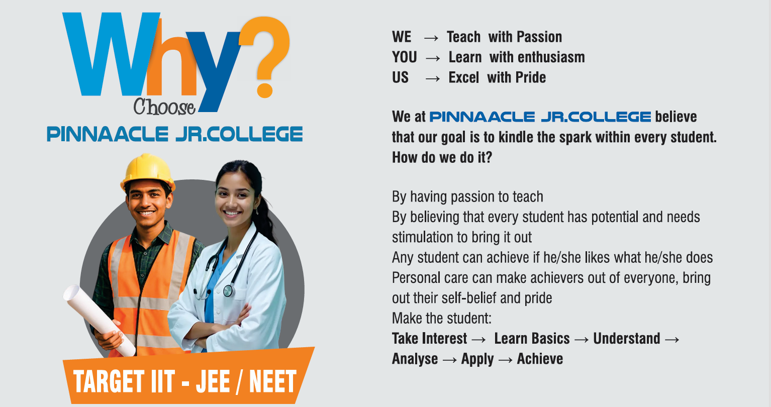 Pinnaacle Jr College emphasizes concept-based learning, expert faculty, disciplined academics, and continuous student mentoring, ensuring consistent academic progress.
